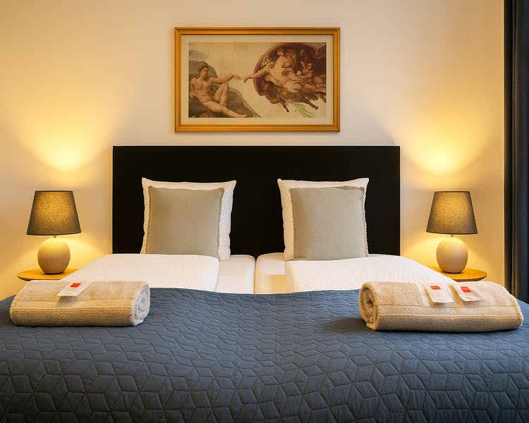 Rumligt superior dobbelt-/3-sengsværelse ideelt til par, venner eller små familier, der ønsker lidt ekstra komfort. Værelset har stor dobbeltseng samt sovesofa eller ekstra seng, eget badeværelse, fladskærms-tv, siddeområde og gratis WiFi – perfekt til længere ophold i København. Book direkte på vores hjemmeside og få 10% rabat på dette værelse, med priser fra 899 DKK pr. nat